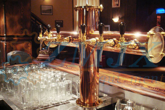 酒柱是啤酒設(shè)備當(dāng)中重要的組成部分,一方面,他能夠?qū)⑵【茝陌l(fā)酵罐中取出來(lái),更重要的一方面是,它能夠提供點(diǎn)綴整套設(shè)備的作用。酒柱的材質(zhì)分為不銹鋼、紫銅等。主要是根據(jù)整個(gè)啤酒屋的裝修風(fēng)格來(lái)定調(diào),起到畫龍點(diǎn)睛的作用?,F(xiàn)在國(guó)內(nèi)越來(lái)越多的消費(fèi)者越來(lái)越多的關(guān)注就餐環(huán)境跟格調(diào),特別是年輕人。因此酒柱也越來(lái)越受到酒店、酒吧經(jīng)營(yíng)者的青睞!