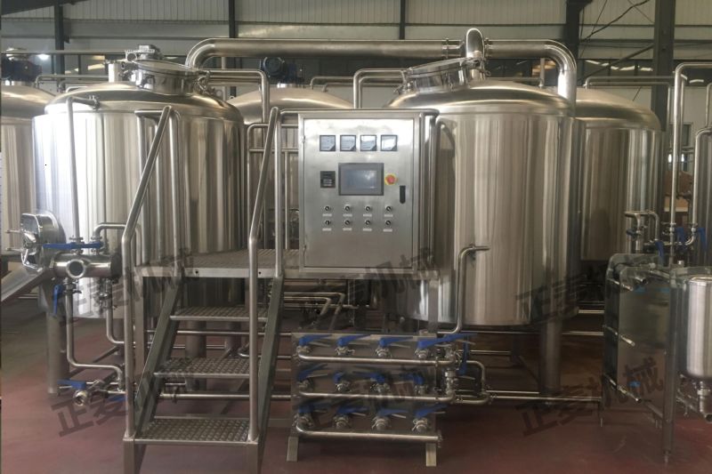糖化系統(tǒng)是有糖化煮沸鍋、過濾槽、漩渦沉淀槽及工藝管道組成;糖化煮沸鍋為“蒸汽加熱式;電加熱式;燃氣加熱式”組成。罐體為雙層保溫方式“巖棉或聚氨酯”材料。加熱面積足夠達到麥汁煮沸蒸發(fā)量,能夠有效阻止熱能耗的外泄。罐體內部采用國際標準不銹鋼精加工而成;外部采用不銹鋼或紫銅鏡面板組成,古樸典雅的外觀造型;即釀出美妙佳釀還有藝術品的象征。糖化煮沸鍋頂部加裝攪拌系統(tǒng)能使醪液均勻糖化;過濾槽頂部加裝耕刀系統(tǒng)保證醪液勻速過濾避免氧化。漩渦沉淀系統(tǒng);采用切線及離心力的作用能夠徹底的分離出多余的蛋白質及雜質,達到成熟麥汁的純凈度。