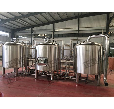 糖化系統(tǒng)是有糖化煮沸鍋、過(guò)濾槽、漩渦沉淀槽及工藝管道組成;糖化煮沸鍋為“蒸汽加熱式;電加熱式;燃?xì)饧訜崾健苯M成。罐體為雙層保溫方式“巖棉或聚氨酯”材料。加熱面積足夠達(dá)到麥汁煮沸蒸發(fā)量,能夠有效阻止熱能耗的外泄。罐體內(nèi)部采用國(guó)際標(biāo)準(zhǔn)不銹鋼精加工而成;外部采用不銹鋼或紫銅鏡面板組成,古樸典雅的外觀造型;即釀出美妙佳釀還有藝術(shù)品的象征。糖化煮沸鍋?lái)敳考友b攪拌系統(tǒng)能使醪液均勻糖化;過(guò)濾槽頂部加裝耕刀系統(tǒng)保證醪液勻速過(guò)濾避免氧化。漩渦沉淀系統(tǒng);采用切線及離心力的作用能夠徹底的分離出多余的蛋白質(zhì)及雜質(zhì),達(dá)到成熟麥汁的純凈度。