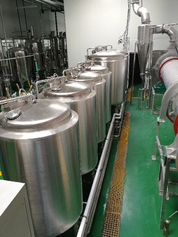 啤酒發(fā)酵系統(tǒng)有發(fā)酵罐、清酒罐、暫存罐組成;發(fā)酵是啤酒生產(chǎn)中極其重要的工藝過(guò)程。是一個(gè)有酵母參與的復(fù)雜的生化反應(yīng)過(guò)程,發(fā)酵罐為錐底圓柱形,罐體具備自身冷卻裝置,可很容易地控制發(fā)酵溫度;罐底為錐形,回收酵母及清洗都很方便;罐體具有CIP清洗系統(tǒng),保證了生產(chǎn)中的衛(wèi)生安全。具備了先進(jìn)的國(guó)際發(fā)酵工程技術(shù),可采用PLC自動(dòng)控溫技術(shù)。全過(guò)程控制啤酒發(fā)酵。