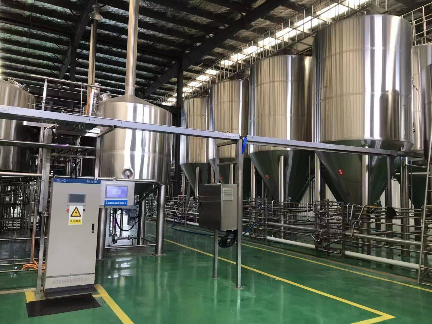 啤酒發(fā)酵系統(tǒng)有發(fā)酵罐、清酒罐、暫存罐組成;發(fā)酵是啤酒生產(chǎn)中極其重要的工藝過程。是一個(gè)有酵母參與的復(fù)雜的生化反應(yīng)過程,發(fā)酵罐為錐底圓柱形,罐體具備自身冷卻裝置,可很容易地控制發(fā)酵溫度;罐底為錐形,回收酵母及清洗都很方便;罐體具有CIP清洗系統(tǒng),保證了生產(chǎn)中的衛(wèi)生安全。具備了先進(jìn)的國際發(fā)酵工程技術(shù),可采用PLC自動控溫技術(shù)。全過程控制啤酒發(fā)酵。
